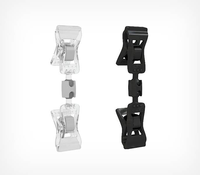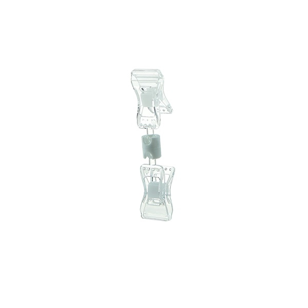 Прищепка малая двойная FXS-DBL — универсальный ценникодержатель, состоящий из двух прищепок. Одна из них крепится на торец полки, край коробки, корзины, блюда толщиной до 10 мм, а другая непосредственно держит ценник