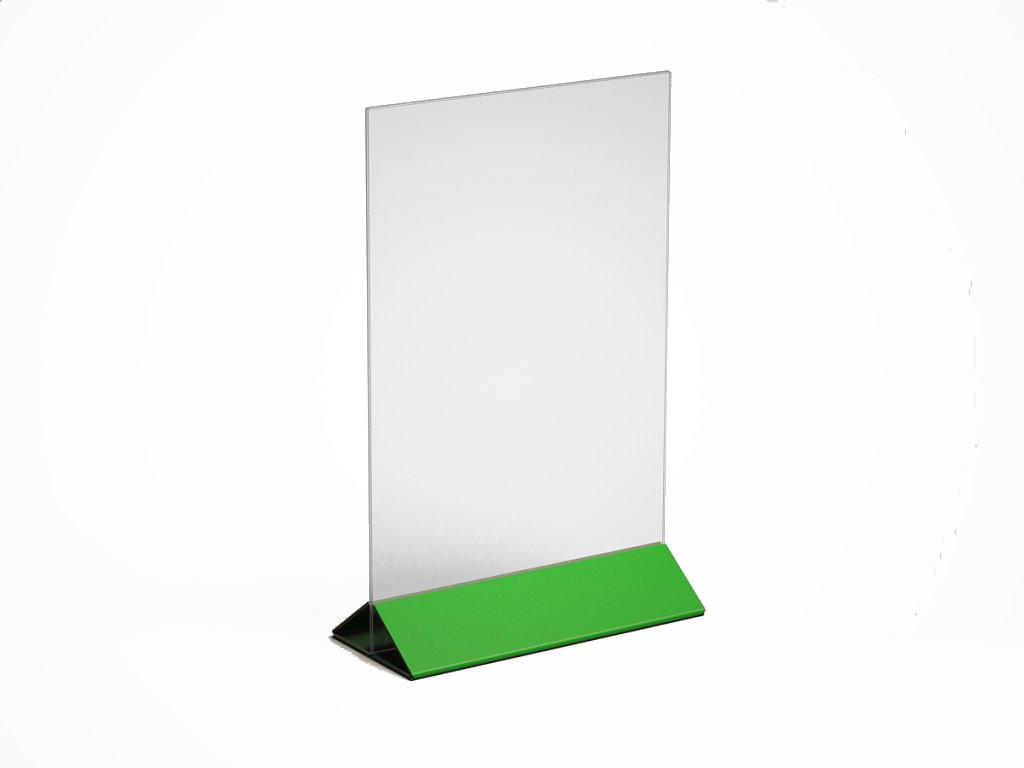 МЕНЮХОЛДЕР ФОРМАТА А-4, С НИЖНЕЙ ЧАСТЬЮ РАЗЛИЧНЫХ ЦВЕТОВ, КЛАСИЧЕСКОГО ВИДА. СОСТОИТ ИЗ ДВУХ ЧАСТЕЙ, ПРОЗРАЧНОГО Т-ОБРАЗНОГО ПЛАНШЕТА И НИЖНЕГО ДЕРЖАТЕЛЯ, ТРЕУГОЛЬНОЙ ФОРМЫ. ПОДХОДЯЩИЕ ИЗДЕЛИЕ, ПРИ НЕОБХОДИМОСТИ ПО ОСОБЕННОМУ ВЫДЕЛИТЬ ИНФОРМАЦИЮ.