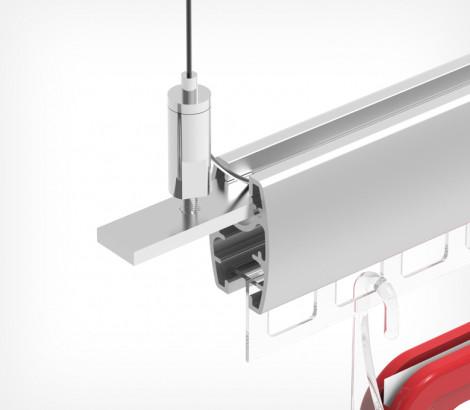 Регулируемый по высоте зажим для троса 1.0 мм. Позволяет легко регулировать высоту подвеса профилей UNITRACK и BANNERSNAPPER. Для регулировки троса в конструкции фиксатора предусмотрена кнопка ослабления зажима.При отпускании кнопки трос снова фиксируется.