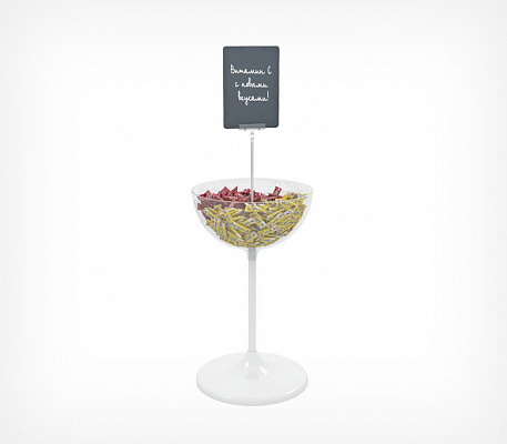 UNIBOWL-24 — дисплей-чаша для выкладки мелкого товара в кассовой зоне или на линии распродаж. Состоит из трёх элементов: прозрачной пластиковой чаши объёмом 24 литра, металлической опорной ножки и широкого пластикового основания.
