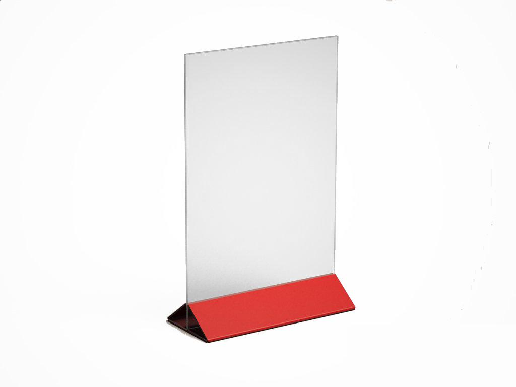 МЕНЮХОЛДЕР ФОРМАТА А-4, С НИЖНЕЙ ЧАСТЬЮ РАЗЛИЧНЫХ ЦВЕТОВ, КЛАСИЧЕСКОГО ВИДА. СОСТОИТ ИЗ ДВУХ ЧАСТЕЙ, ПРОЗРАЧНОГО Т-ОБРАЗНОГО ПЛАНШЕТА И НИЖНЕГО ДЕРЖАТЕЛЯ, ТРЕУГОЛЬНОЙ ФОРМЫ. ПОДХОДЯЩИЕ ИЗДЕЛИЕ, ПРИ НЕОБХОДИМОСТИ ПО ОСОБЕННОМУ ВЫДЕЛИТЬ ИНФОРМАЦИЮ.