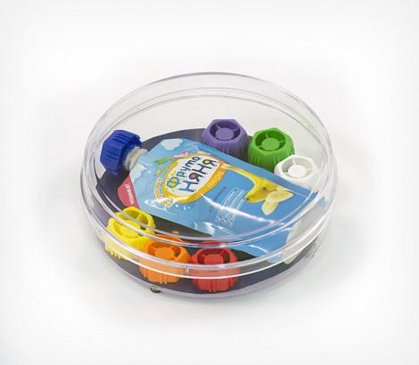 Увеличенная по высоте монетница серии RONDO создает дополнительные возможности для демонстрации рекламируемых продуктов покупателям. Внутреннее пространство этой монетницы позволяет делать вкладки муляжей или реальных продуктов, а также формованных рекламных вставок и конструкций. Диаметр информационного поля: 160 мм.