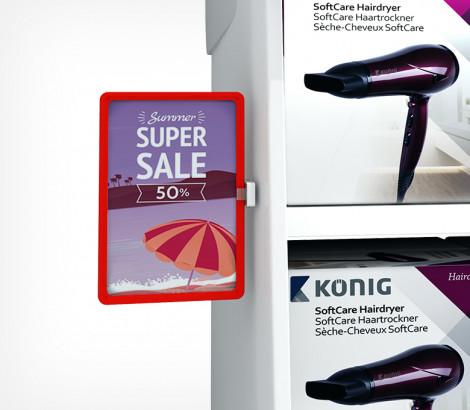 Квадратный магнитный держатель рамки под углом 90° к поверхности и паралельно поверхности, позволяет крепить пластиковые рамки различных форматов на любых металлических поверхностях. Рекомендуется использовать по 2 магнитных держателя