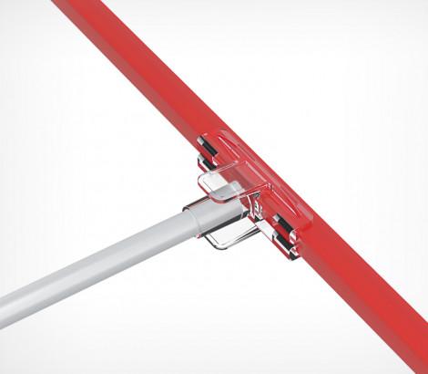 Т-держатель для крепления пластиковых рамок на трубке Ø 9 мм. Имеет боковые фиксаторы, облегчающие установку и снятие рамки с держателя. Рекомендуется для использования с пластиковыми рамками форматов А-6, А-5, А-4, А-3.