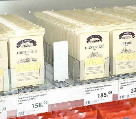 Толкатель FORTA MAGNA-0 — применяется для автоматической подачи товаров в устойчивой и неустойчивой упаковке к краю полки, подходит для продукции в твёрдой упаковке, от лёгкой до тяжёлой, в зависимости от выбранной силы пружины, идеально подходит для косметической и гигиенической продукции, коробок с конфетами и сырами. Монтируется на крепёжный T-профиль, возможно использовать с любыми видами разделителей