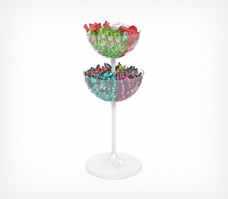 UNIBOWL-TOWER-DIV — двухуровневый дисплей для выкладки товаров в компактной упаковке. Состоит из двух чаш разных объёмов, что позволяет увеличивать объёмы выкладки и эффективность использования торговой площади.
