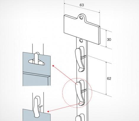 Пластиковая подвесная страйп-лента повышенной прочности. Изготовленная методом литья под давлением, лента обеспечивает размещение на ней товара весом до 7 кг ! 12 пластиковых крючков-зажимов, расположенных с шагом 62мм, позволяют как подвешивать товар, так и прижимать его к ленте. Небольшой топпер, расположенный в верхней части ленты, предназначен для крепления ценника или рекламной наклейки. Количество крючков - 12.